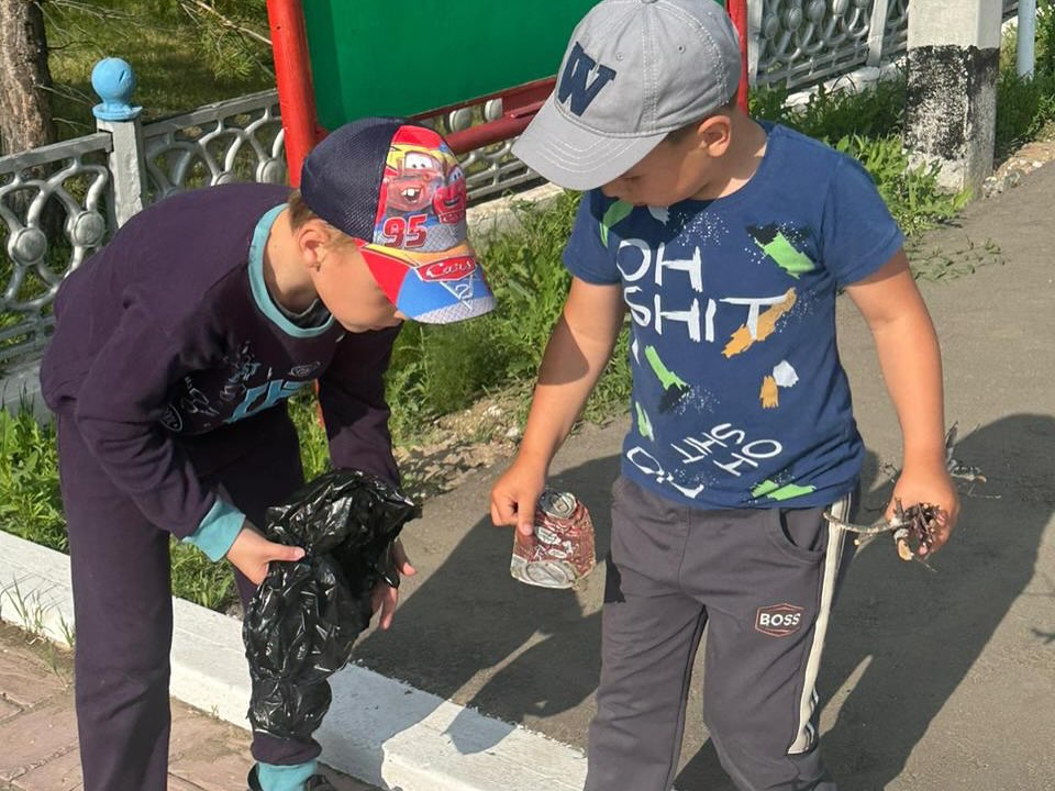 Сегодня в летнем лагере «Веселая карусель» прошел «День Природы» qamqor-десант убрал территорию школы от мусора.