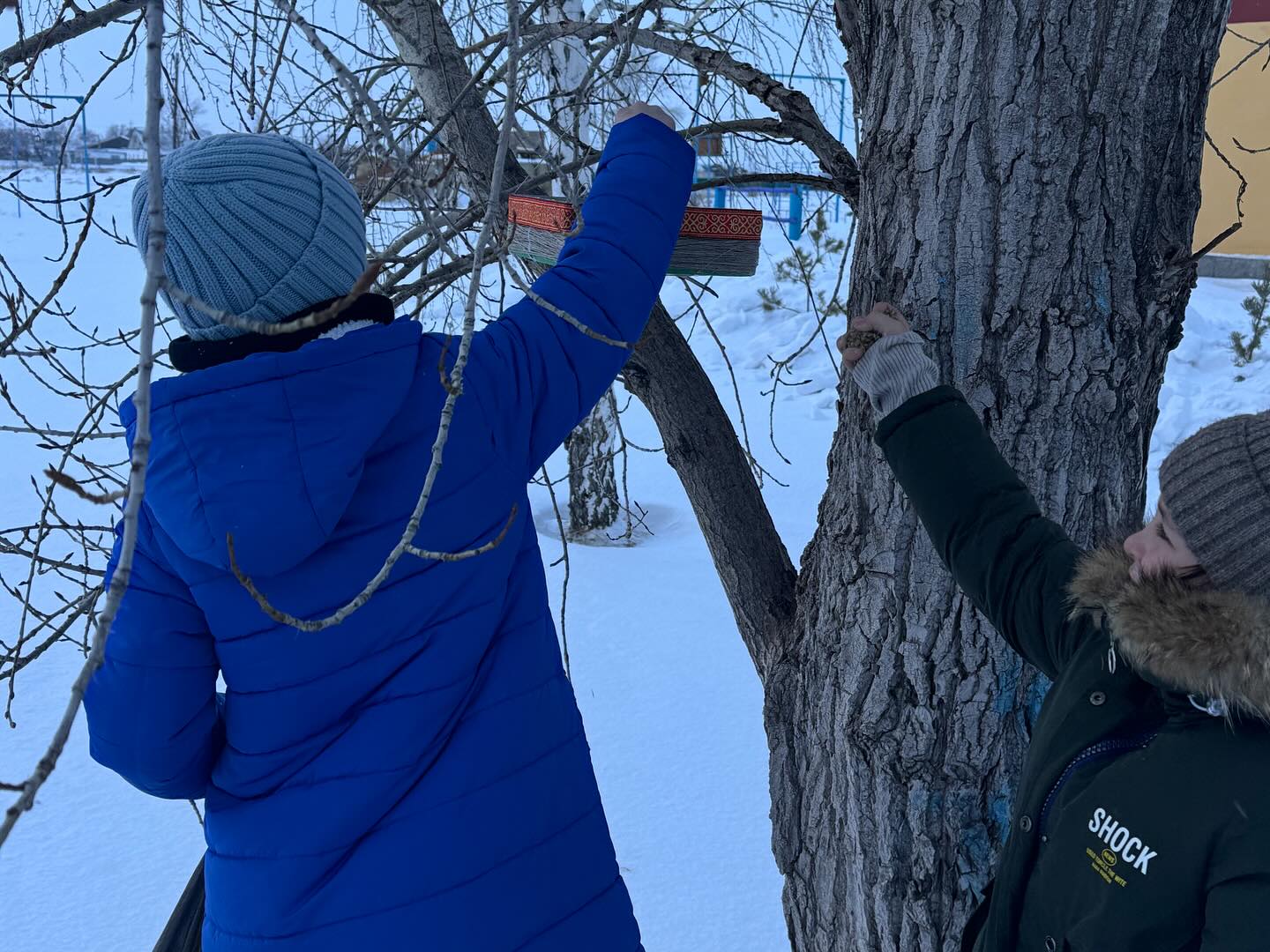 Сегодня учащиеся 1-4 классов КГУ «Калиновская СОШ» приняли участие в акции «Кафе для птиц». Своими руками они сделали кормушку для птиц, и повесили её в школьном дворе.
