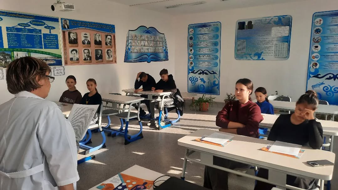 В КГУ "Калиновская СОШ" была проведена беседа на тему "Защити себя от туберкулеза".