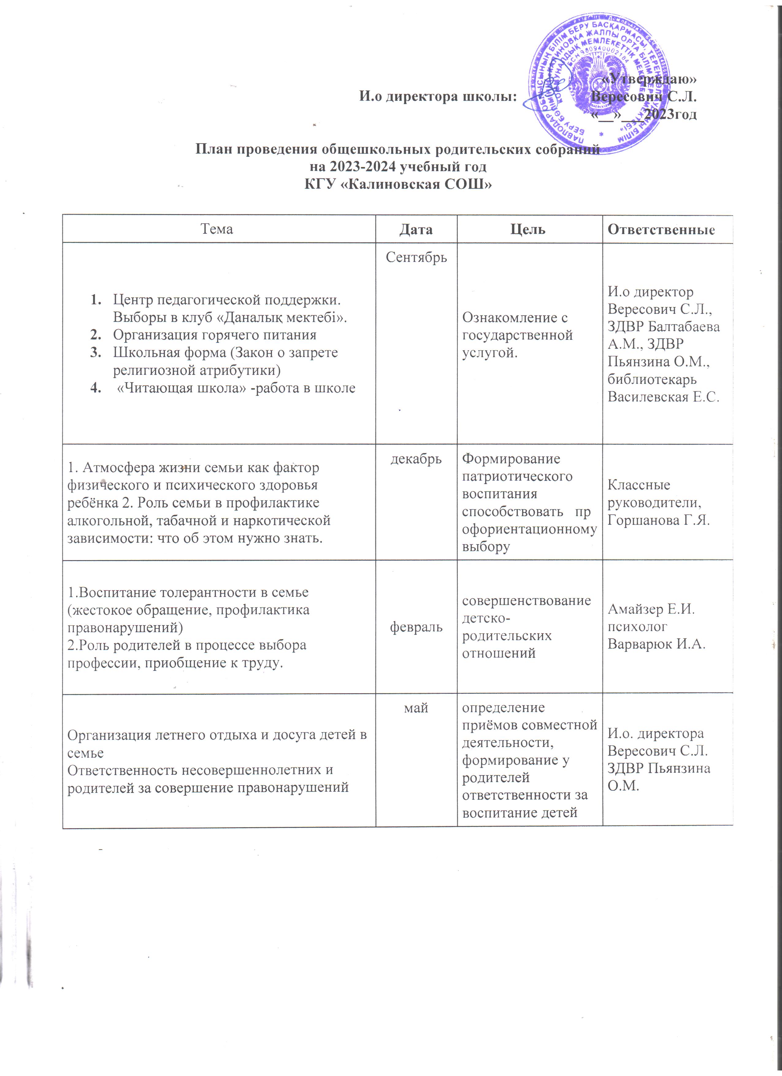 КГУ «Калиновская средняя общеобразовательная школа» отдела образования района Тереңкөл, управления образования Павлодарской области |