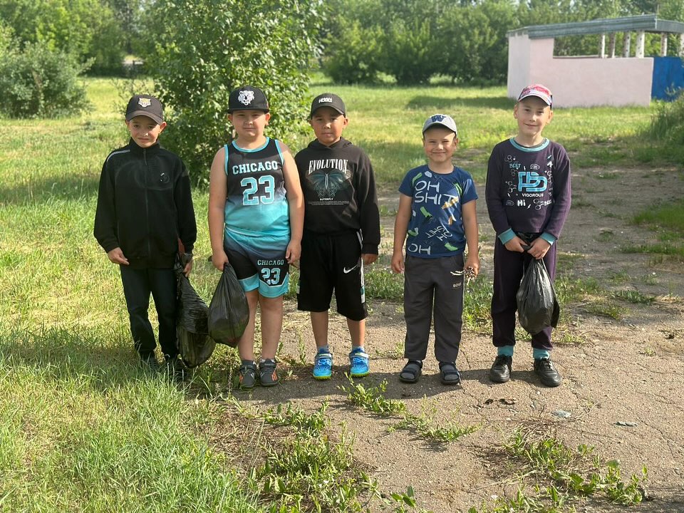 Сегодня в летнем лагере «Веселая карусель» прошел «День Природы» qamqor-десант убрал территорию школы от мусора.